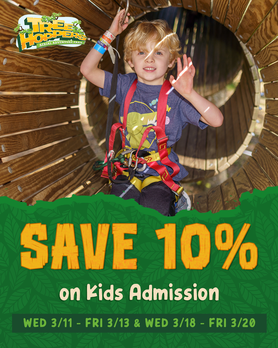 Make weekdays a little more adventurous. Every Wednesday through Friday, get 10% off kids tickets when you book online using promo code MarchinKids.